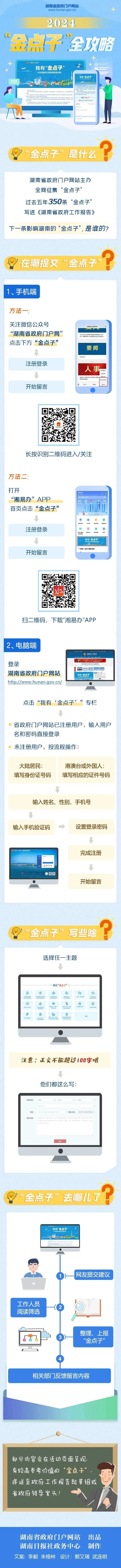 “金点子”怎么提?网友可通过湖南省政府门户网站及微信公众号、微博号以及“湘易办”超级服务端,进入“我有‘金点子’”活动专栏页面,根据提示进行留言。
